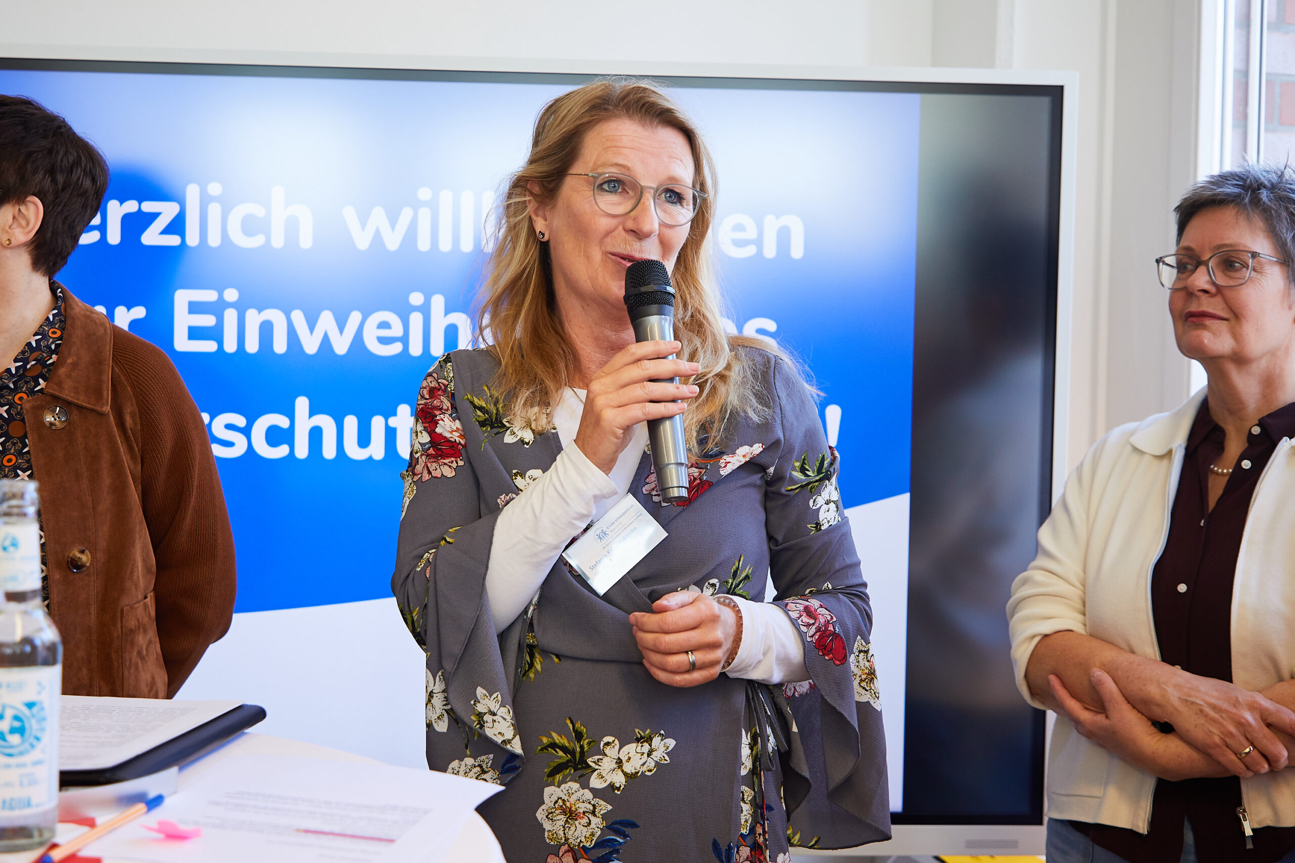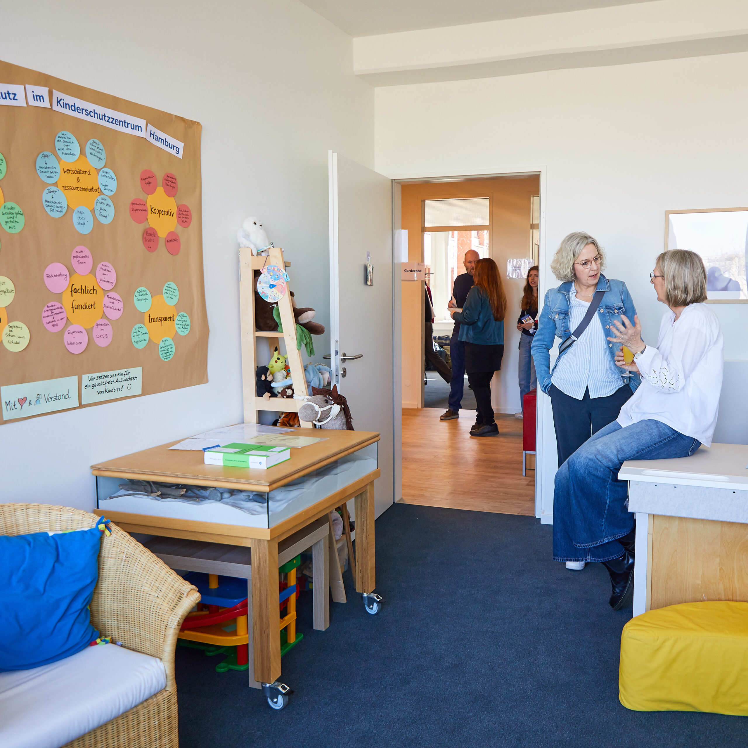 Zur Einweihung begrüßten Staatsrätin Michaela Peponis, Ralf Slüter – Geschäftsführer des Kinderschutzbundes Hamburg – sowie die Leiterin des Kinderschutzzentrums, Stefanie Krüger-Weeke, zahlreiche Mitarbeitende, Kooperationspartner*innen und Unterstützer*innen.